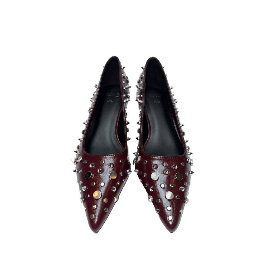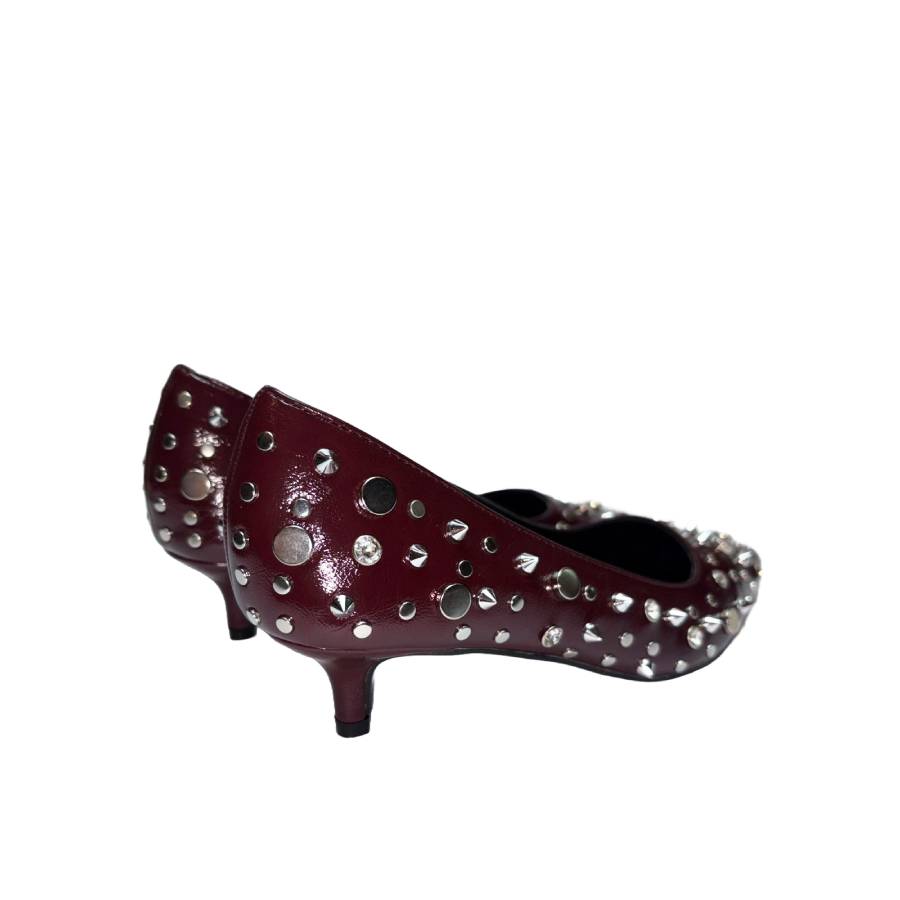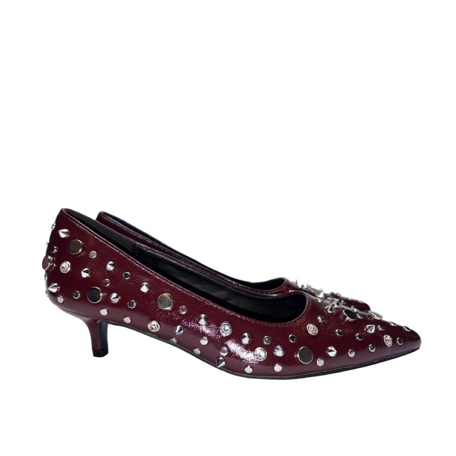 Décolleté in naplak con borchie decorative e tacco 4 cm. Elegante ma grintosa, perfetta per look decisi e confortevoli tutto il giorno.