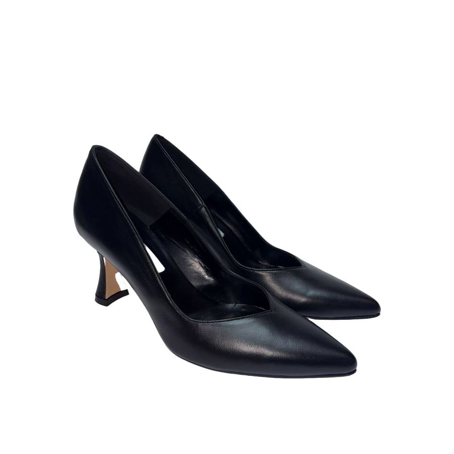 Décolleté in nappa con tacco 7 cm e cuscinetto memory per unire eleganza e comfort tutto il giorno.