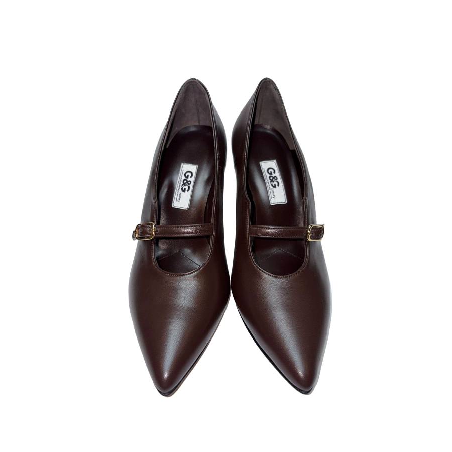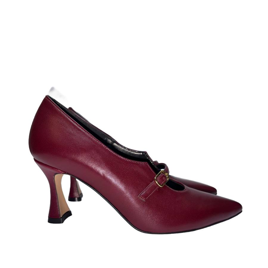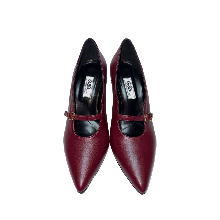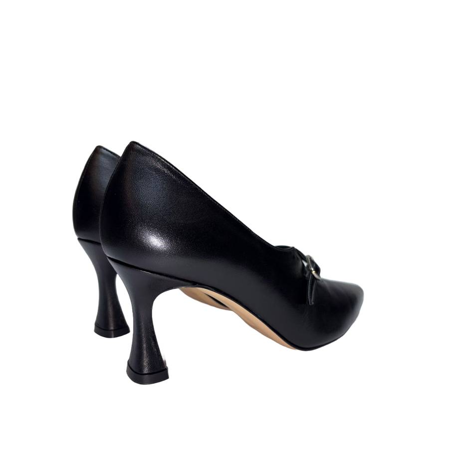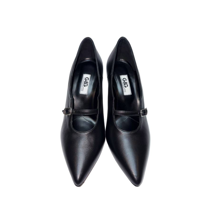 Décolleté in nappa con cinturino, punta affusolata e tacco svasato 7 cm. Dotata di cuscinetto in memory foam per un comfort ottimale. Eleganza e comodità in un unico modello.