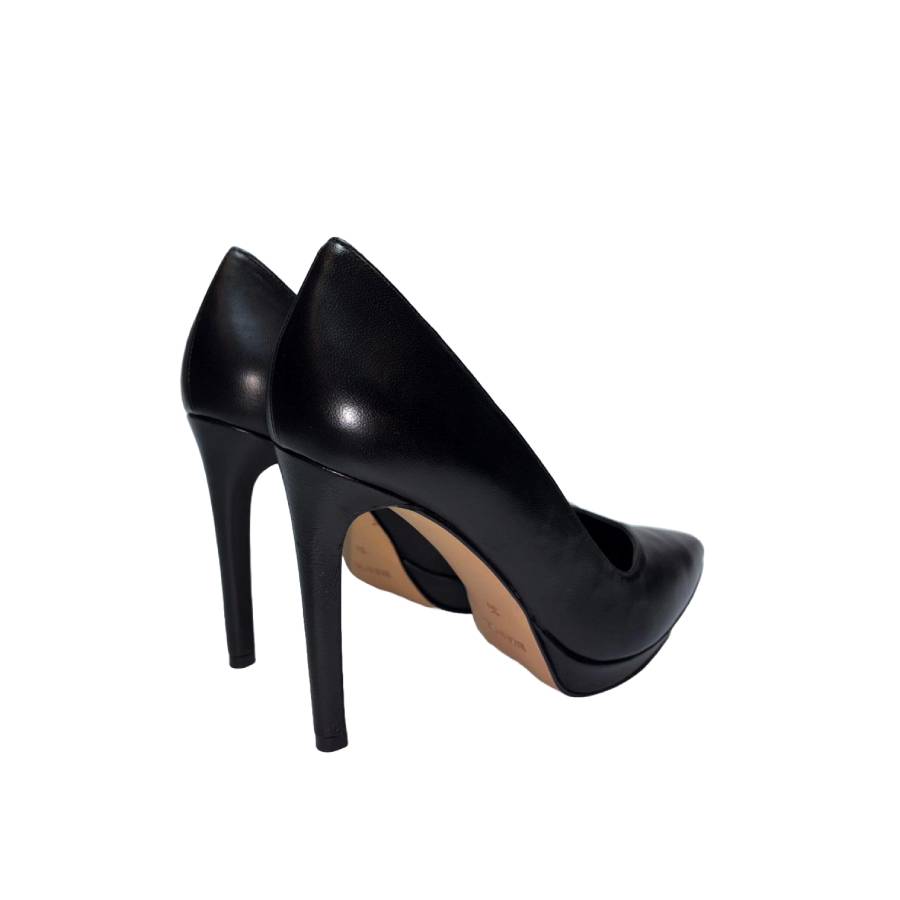 Décolleté in nappa con tacco 10 cm, plateau e cuscinetto in memory per unire stile, slancio e comfort duraturo in ogni occasione.