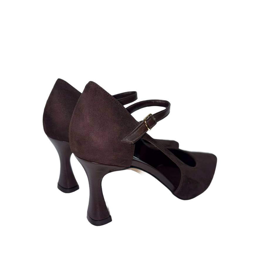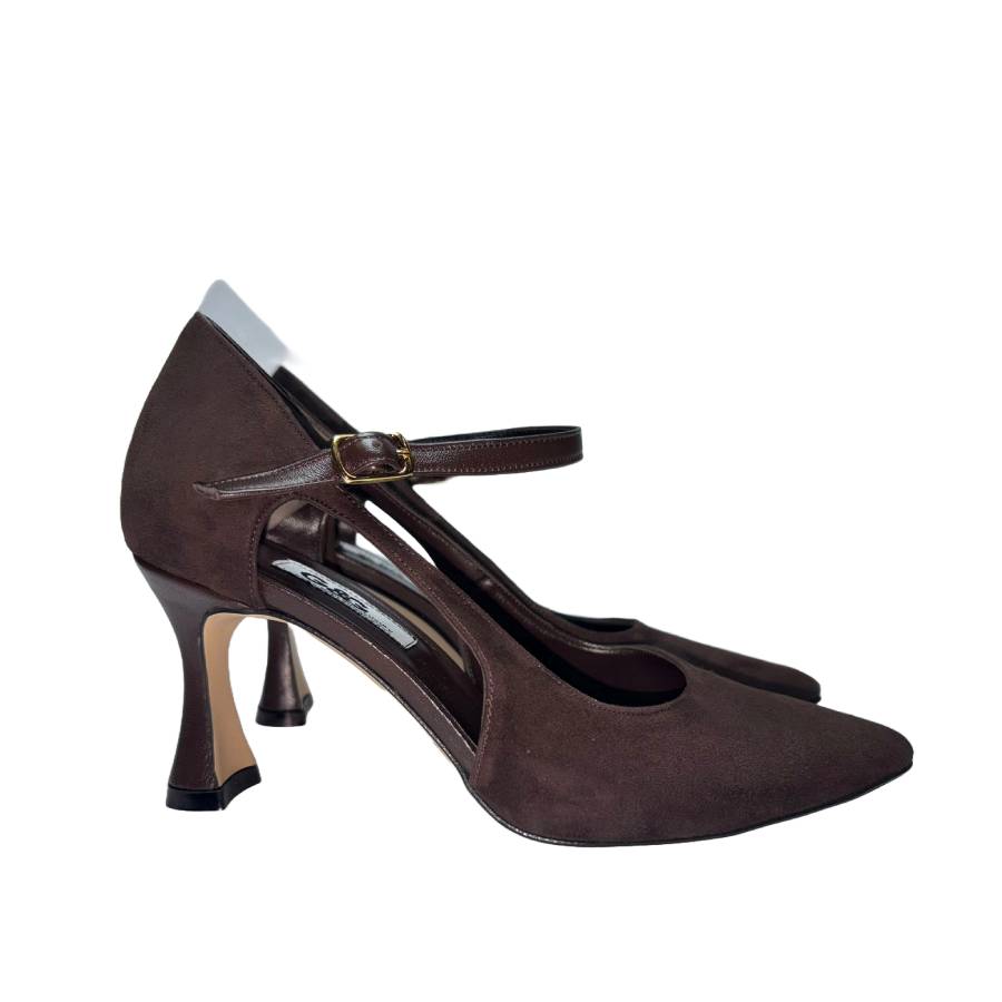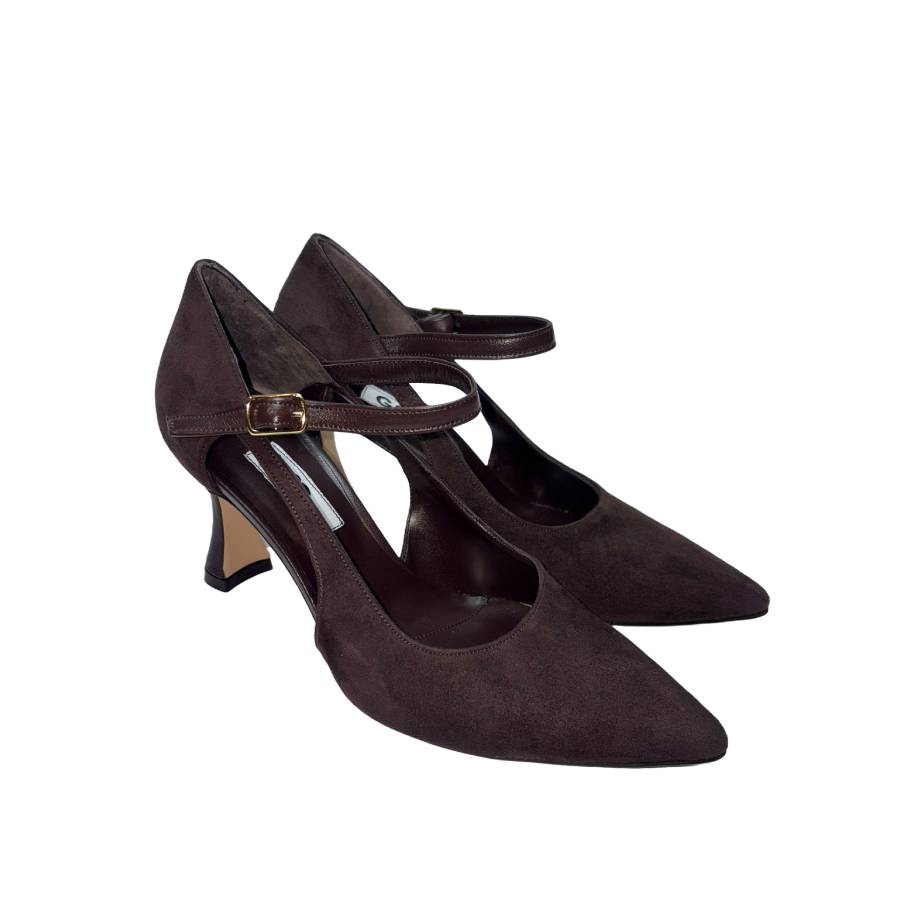Décolleté in camoscio marrone con tacco di 7 cm che offre un buon equilibrio tra eleganza e comfort. La suola è dotata di un cuscinetto in memory foam, che garantisce un’ammortizzazione ottimale e un comfort duraturo. La punta affusolata conferisce un tocco sofisticato, rendendole ideali per diverse occasioni.