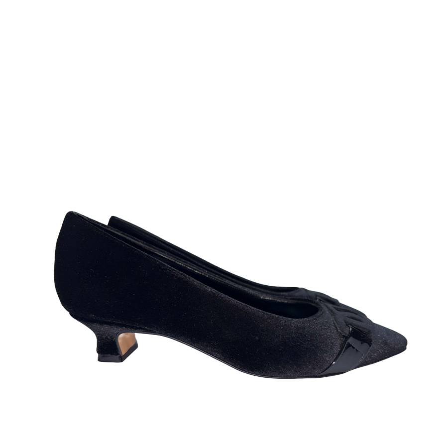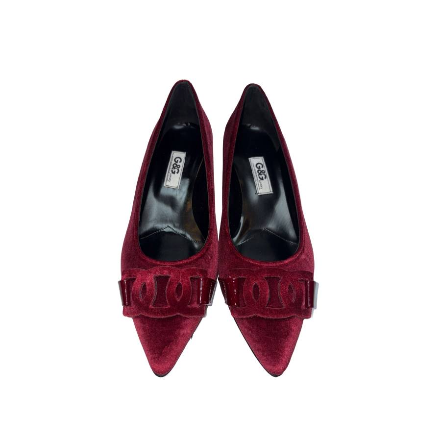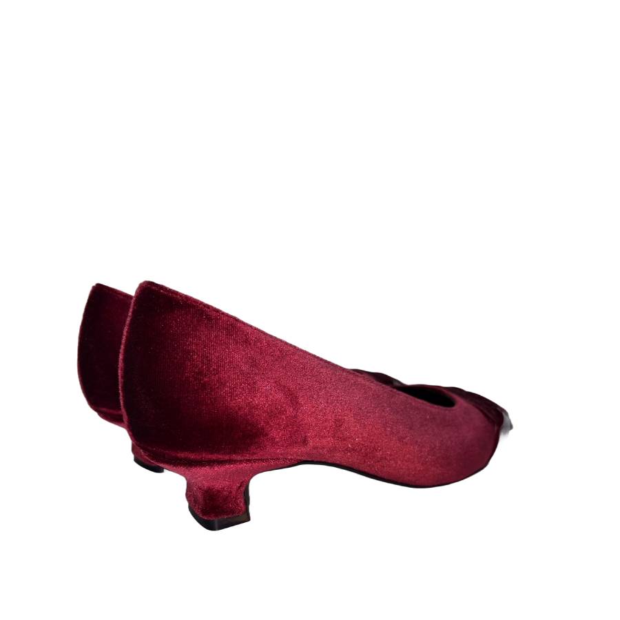 Décolleté in velluto bordeaux con punta affusolata e tacco di 3 cm. Dotata di sottopiede in memory form per un comfort prolungato.