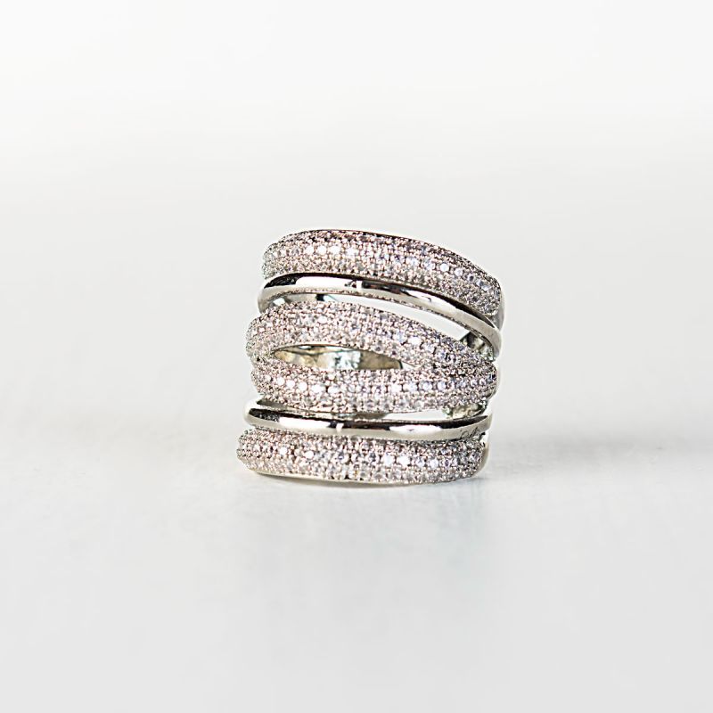 Materiale: metallo con finitura colore oro/argento, zirconi bianchi