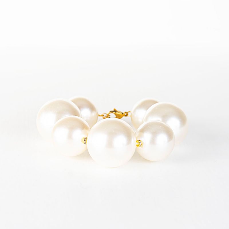Materiale: metallo con finitura colore oro, resine tonalità bianco, zirconi