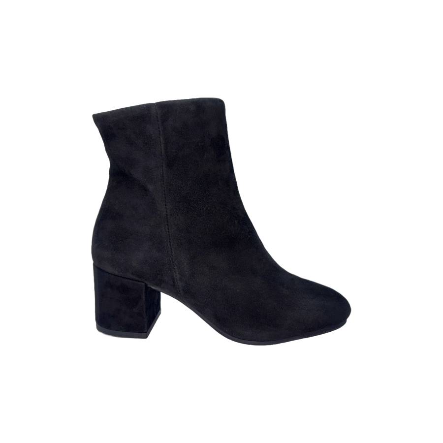 Tronchetto in camoscio con tacco blocco 6 cm, stile versatile e comfort per uso quotidiano.
