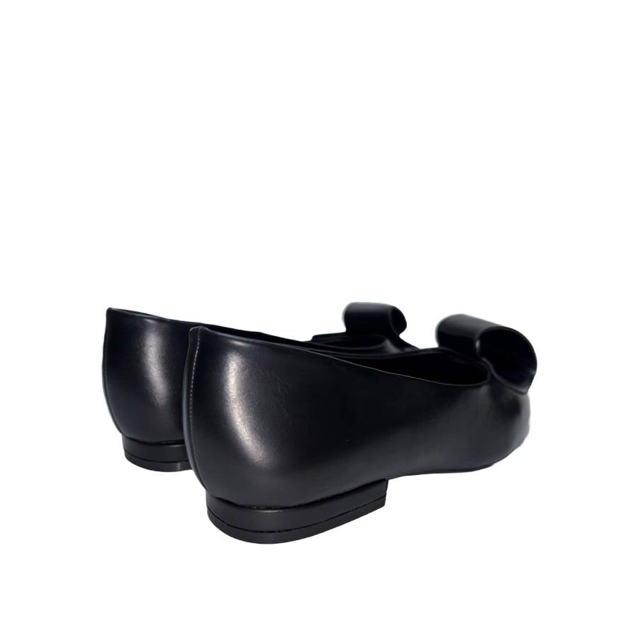 Ballerina realizzata in materiale similpelle con una punta affusolata e un dettaglio decorativo a forma di grande fiocco applicato sulla parte anteriore. Ideale per look da ufficio, occasioni semi-formali o per chi desidera un tocco di eleganza anche nella quotidianità.
