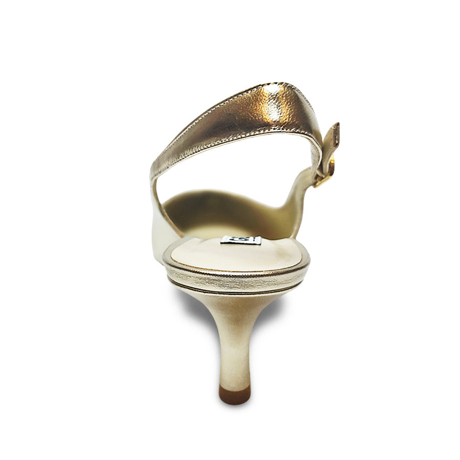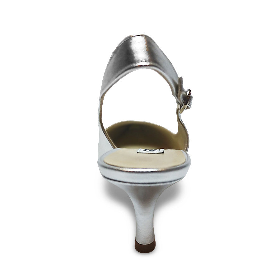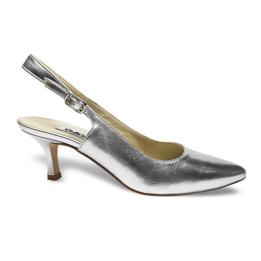 Questo elegante modello di slingback combina stile classico e materiali di alta qualità per un look sofisticato e confortevole. Il design con cinturino dietro assicura una calzata stabile e raffinata, ideale per ogni occasione.
