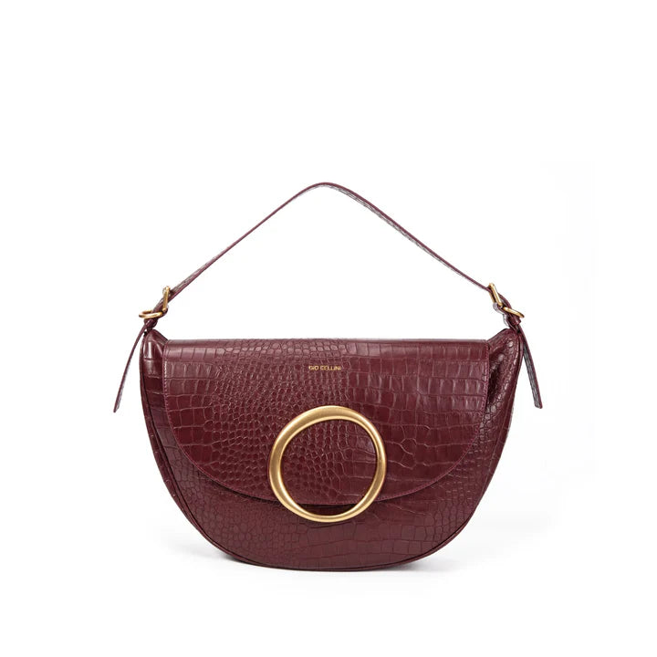 Maxi bag in ecopelle liscia con logo embossed finitura dorata. Chiusura con cerniera. Patta con maxi anello finitura dorata. Manico singolo con fibbie. Tracolla regolabile e removibile. Tre tasche interne di cui una con chiusura zip.
